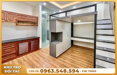 Giá từ 4,5 triệu, diện tích từ 16m², trang bị 8/14 tiện ích. Khu trọ nằm trên trục đường Quang Trung sầm uất, giao thông đi lại thuận tiện. Đẩy đủ các tiện ích cơ bản: cổng vân tay, thang máy, camera an ninh. Không gian sạch sẽ, thông thoáng, nội thất đầy đủ: giường, máy lạnh, kệ bếp, ...