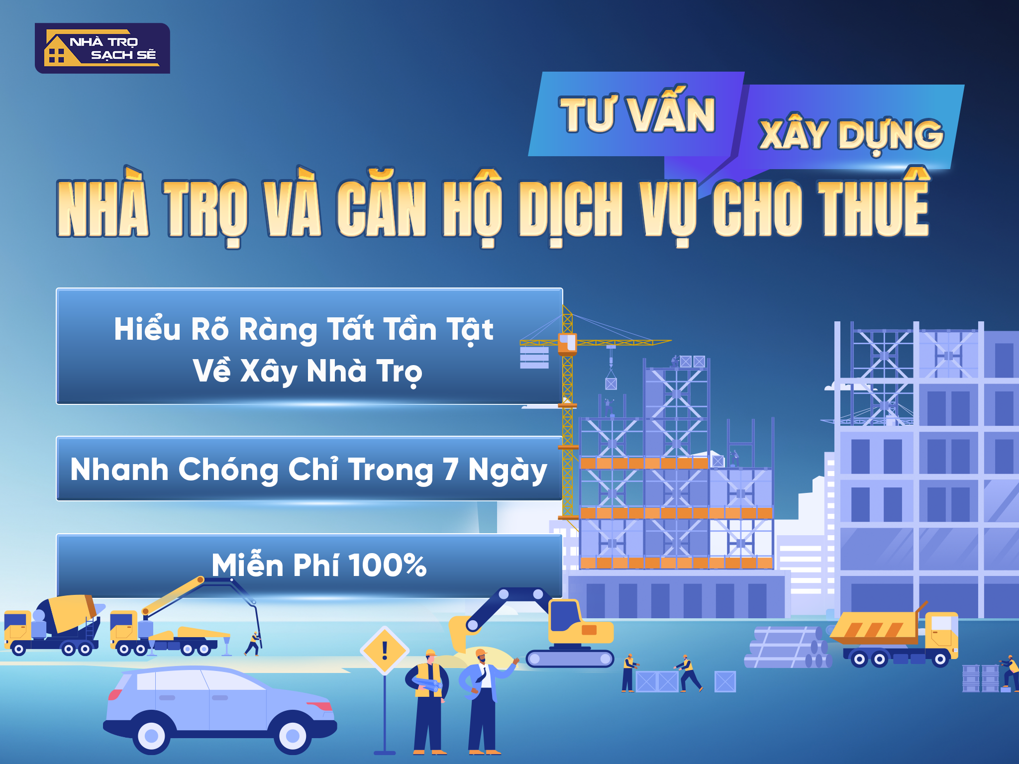 Nhà Trọ Sạch Sẽ thực hiện toàn bộ quá trình tư vấn hoàn toàn miễn phí, không ràng buộc chủ nhà phải thi công hay ký hợp đồng. Mọi quyết định thuộc về chủ đất.