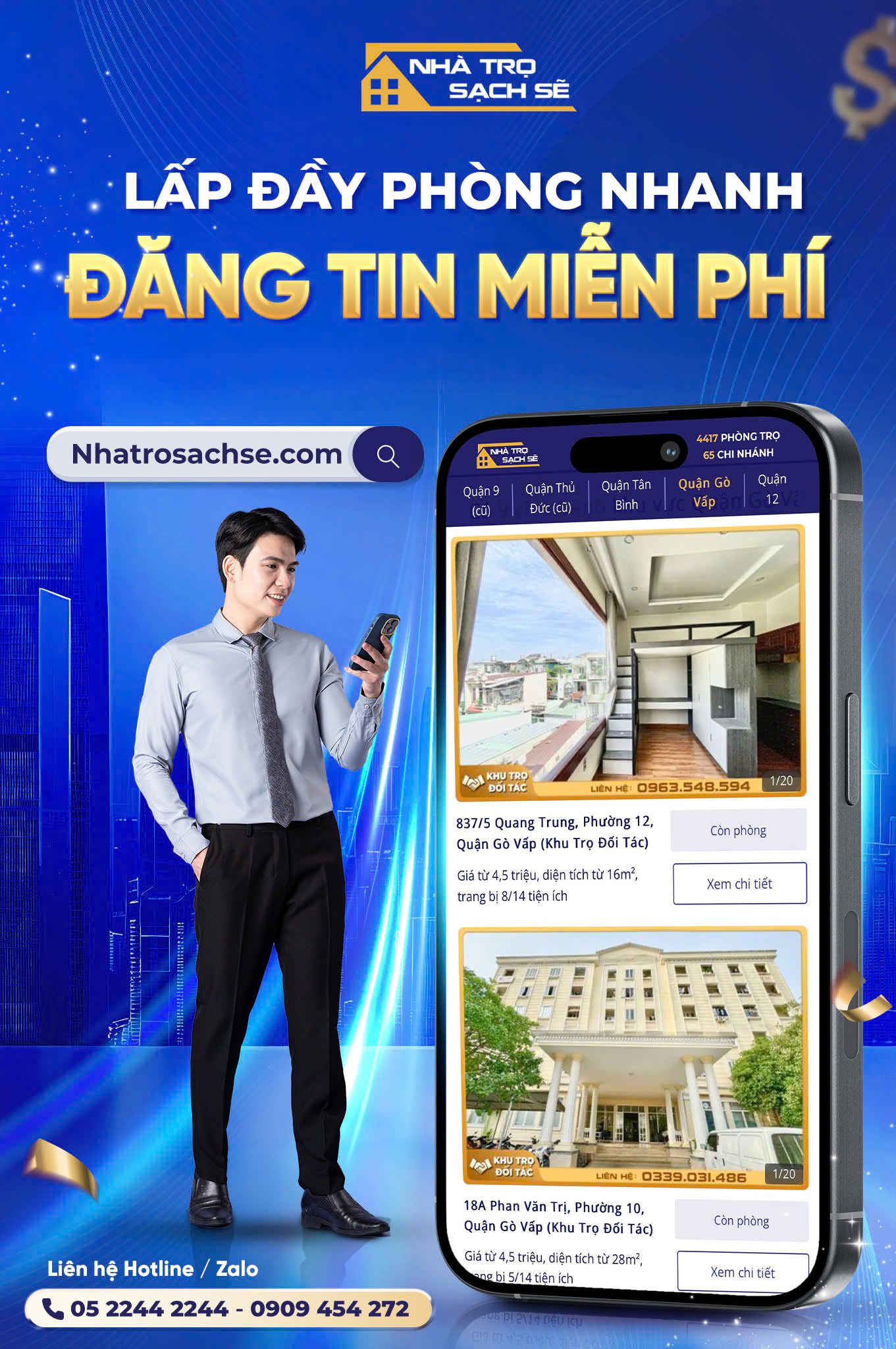 Việc đăng tin trên các website uy tín, cho phép hiển thị đầy đủ thông tin và hình ảnh sẽ giúp tin đăng tiếp cận đúng khách hàng. Hiện nay, Nhà Trọ Sạch Sẽ hỗ trợ đăng tin phòng trọ miễn phí trên website, giúp chủ trọ dễ dàng quảng bá phòng trống đến đúng đối tượng người thuê đang có nhu cầu thực.