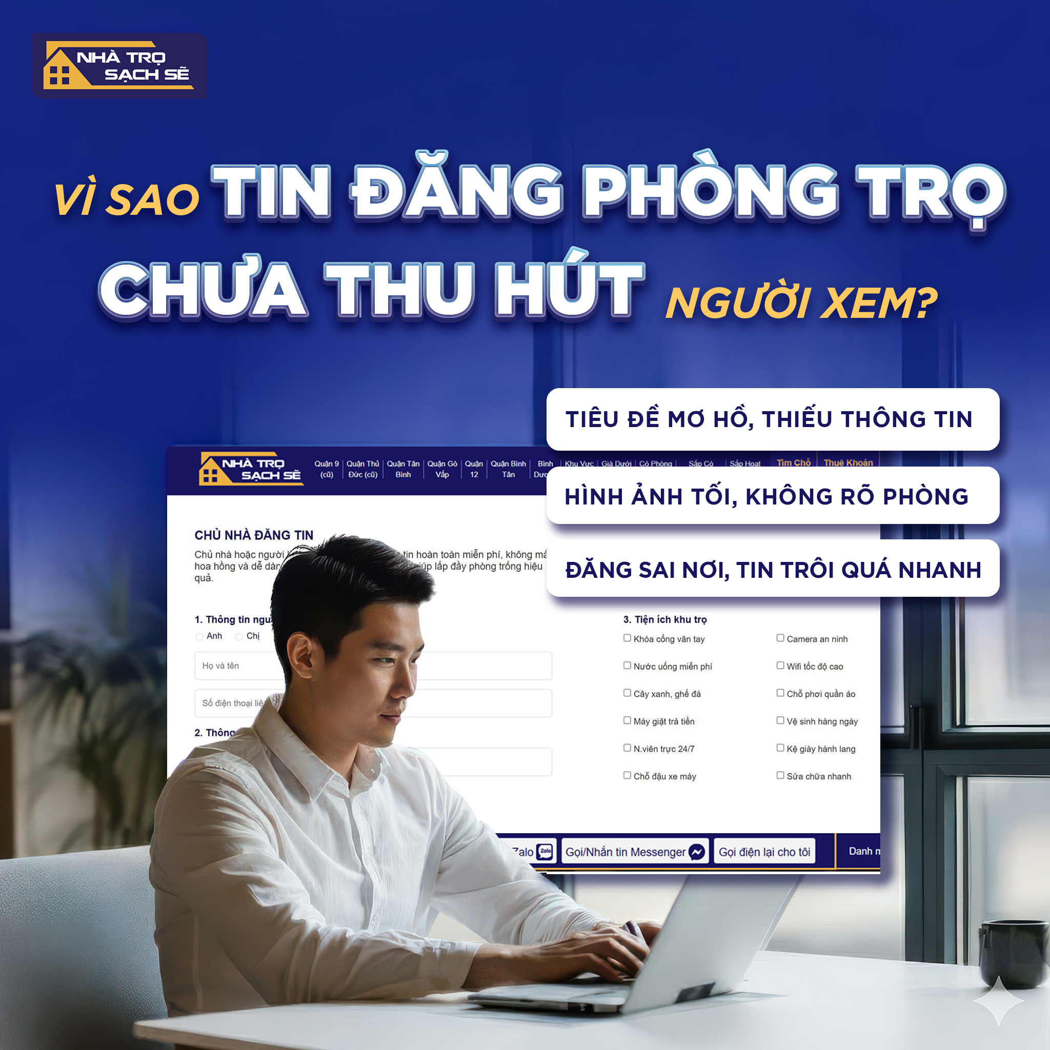 Trong thời đại người thuê nhà có thể tiếp cận hàng trăm tin đăng chỉ trong vài phút, việc tin đăng phòng trọ không thu hút khách hàng là tình trạng rất phổ biến. Không ít chủ trọ sở hữu phòng đẹp, giá tốt nhưng vẫn để trống kéo dài chỉ vì cách đăng tin chưa phù hợp.