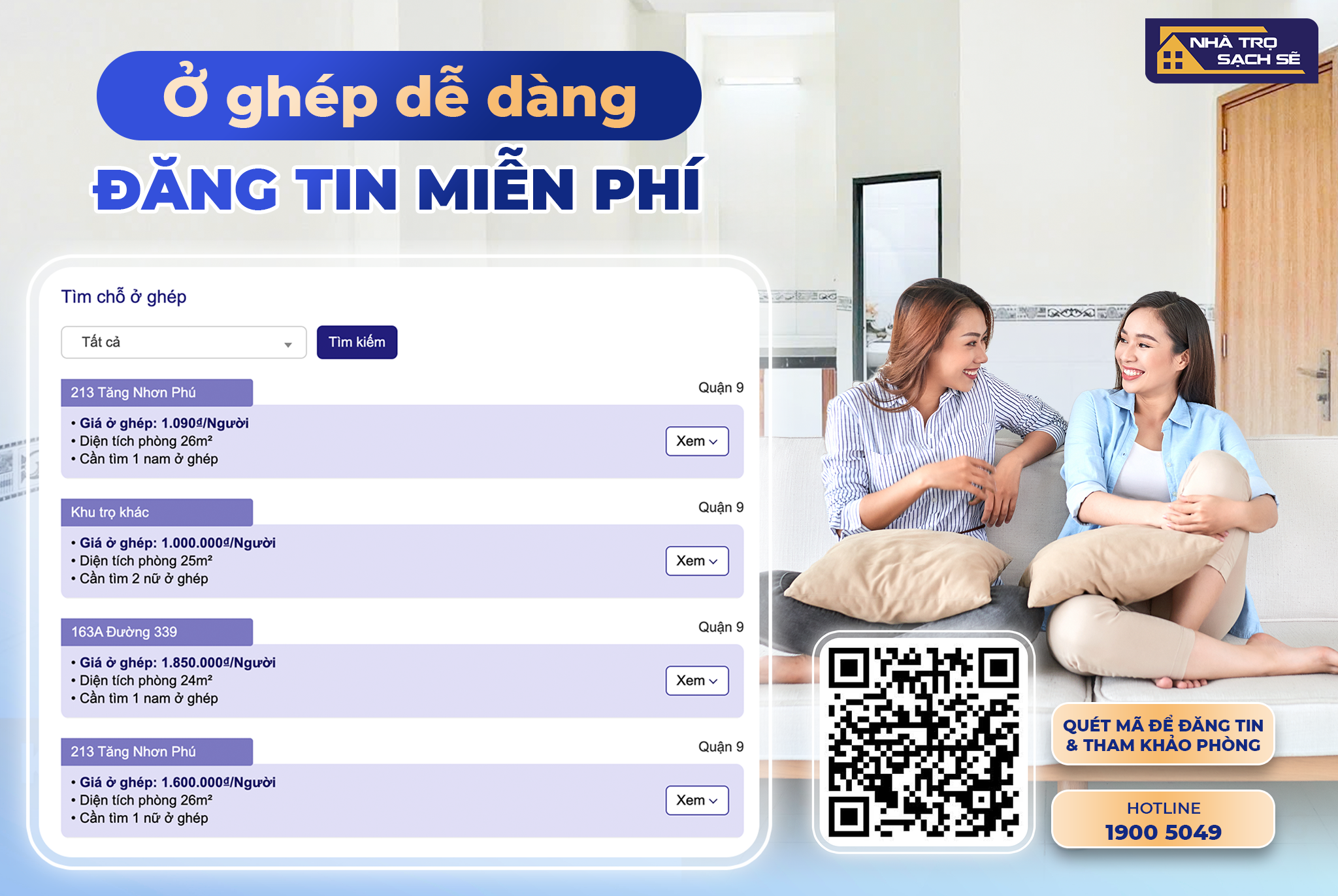 Chỉ cần vài phút, bạn có thể đăng tin tìm người ở ghép ngay trên website Nhà Trọ Sạch Sẽ: https://www.nhatrosachse.com/tim-nguoi-o-ghep