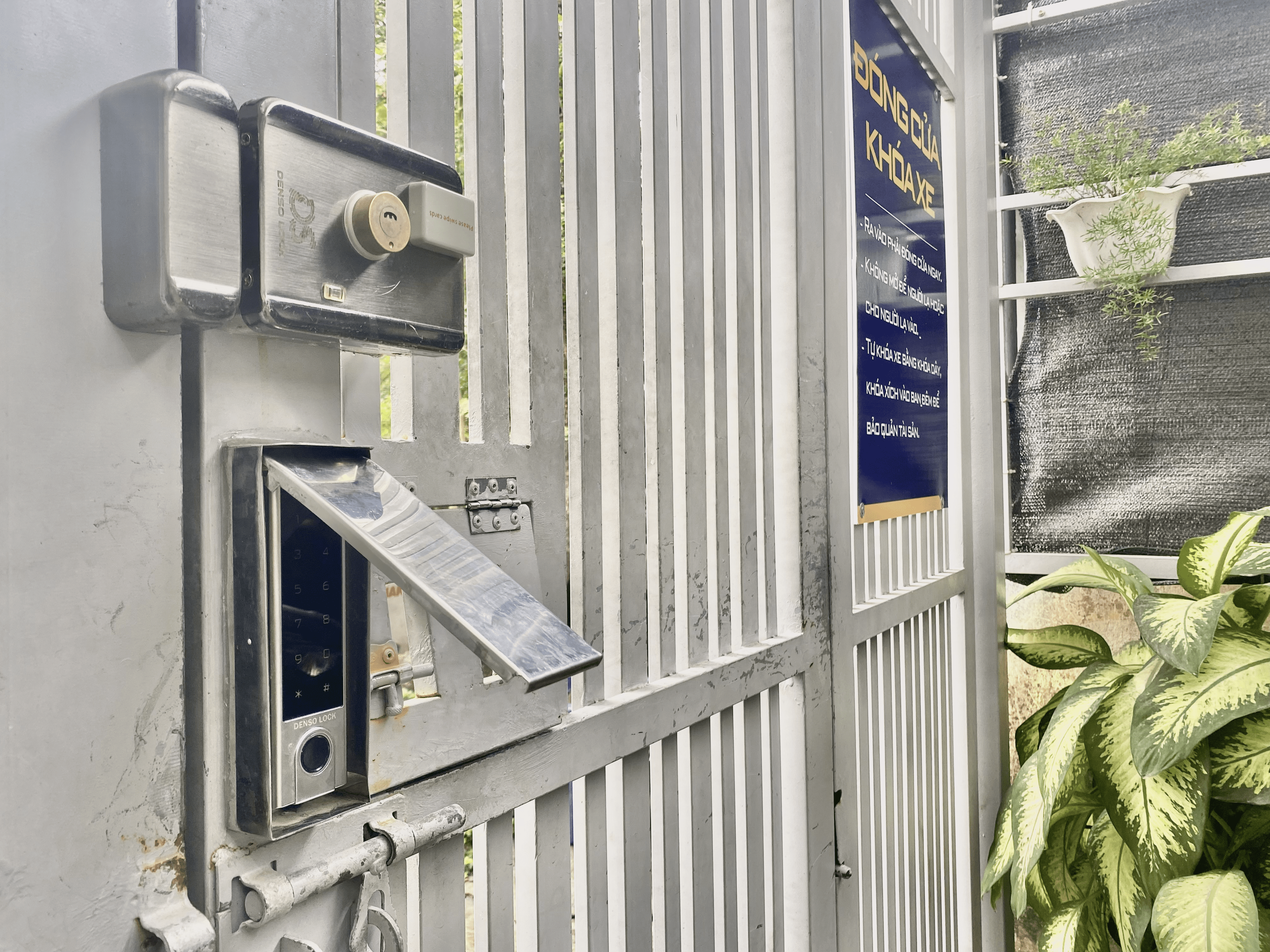 Cổng chính bên ngoài khu trọ sạch sẽ