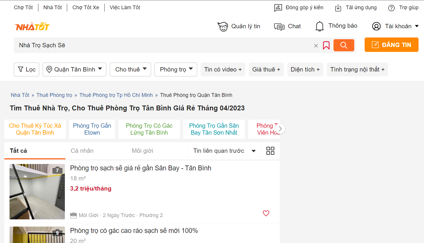 Với hơn 241.398 tin đăng cho thuê (tính tới 14/04/2023), Chợ tốt đang là một trong số các website mua bán, rao vặt trực tuyến hàng đầu Việt Nam. Website sở hữu giao diện đơn giản, dễ nhìn, cách sắp xếp các tiêu chí rõ ràng, giúp bạn tìm được các nội dung cần thiết nhanh chóng và dễ dàng hơn.
