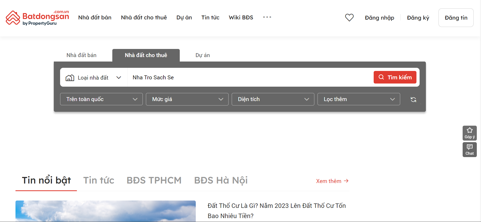 Là một thành viên của Tập đoàn Công nghệ BĐS lớn nhất châu Á - Property Guru, Batdongsan.com.vn luôn nỗ lực để trở thành “Cố vấn tin cậy” và duy trì vị trí là website số 1 về bất động sản, mua, bán, cho thuê nhà đất toàn quốc. Bạn có thể tìm kiếm “nhà trọ cho thuê” với mức giá, vị trí, diện tích phù hợp với yêu cầu của mình một cách dễ dàng, thuận tiện và nhanh chóng. Đặc biệt người dùng có thể trải nghiệm xem nhà sống động như xem trực tiếp với các tin đăng có sử dụng công nghệ 3D scanning.