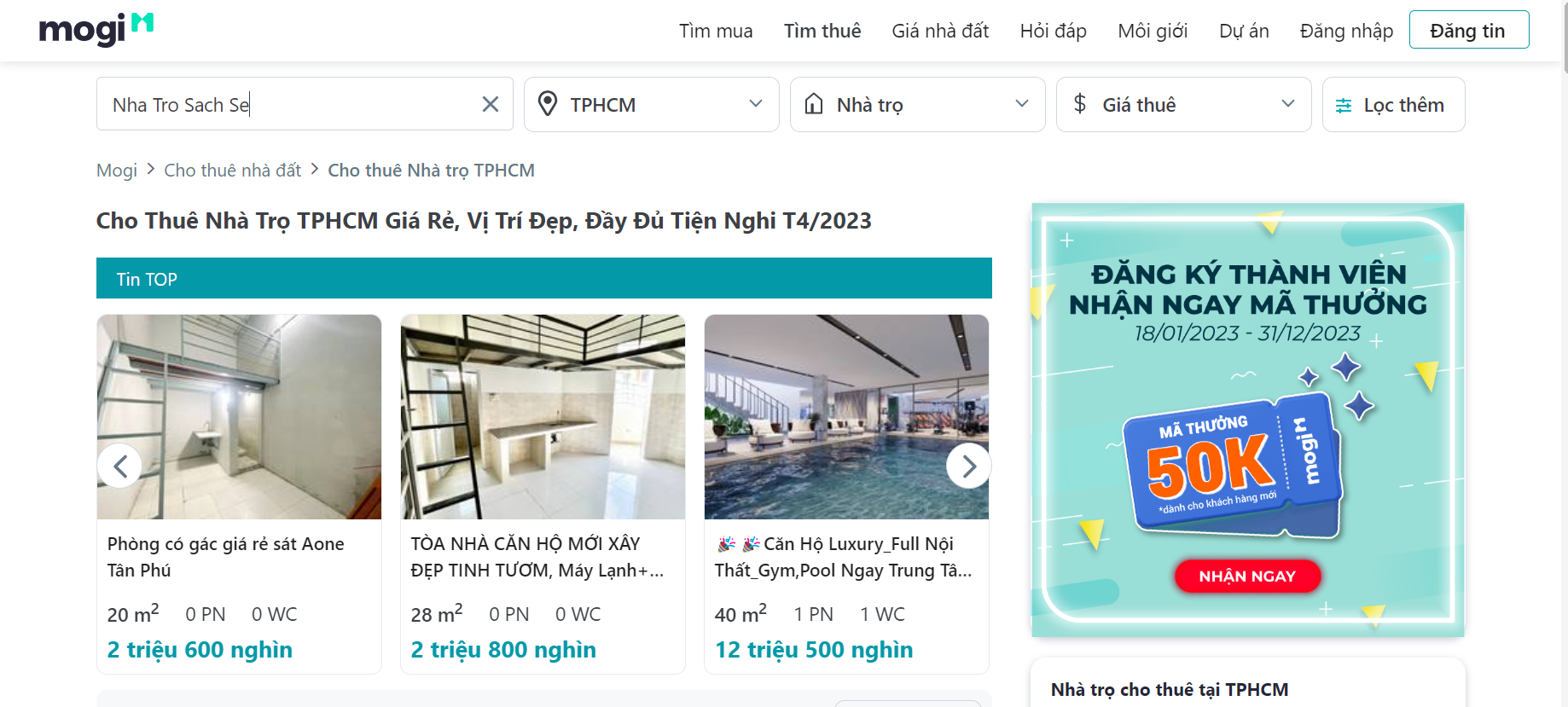 “Mogi.vn là website rao vặt trực tuyến chuyên đăng tin về các sản phẩm bất động sản, đồng thời cung cấp thông tin của các bất động sản thật”, giúp bạn dễ dàng tìm phòng trọ thông qua thiết bị kết nối internet.